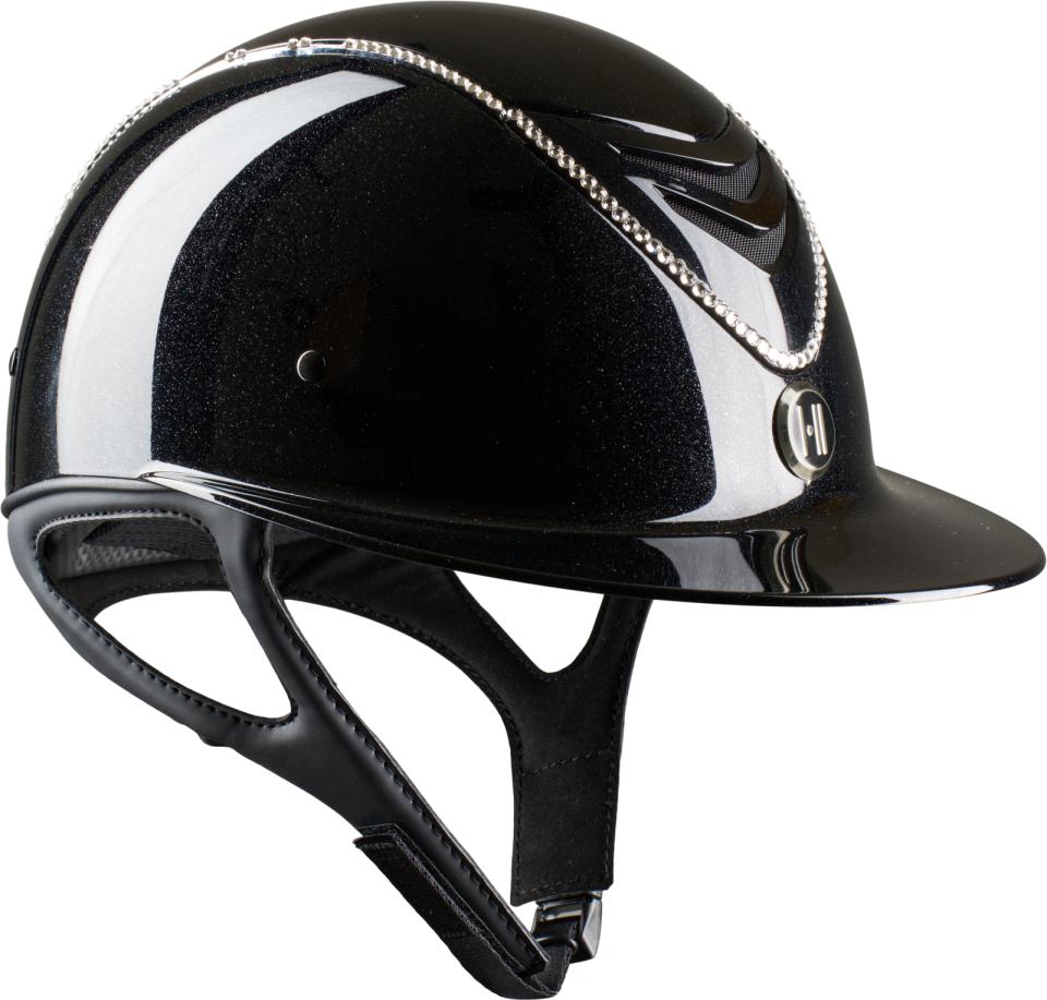 Swarovski crystals are hand-applied, following the shape of the helmet all the way down the front – a sparkling signature that adds refined confidence to your look in the saddle.